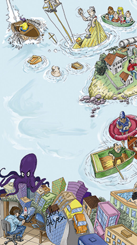 Muitas vezes sonhei a aventura de animar o Pôster que muita gente já chamava de um desenho animado da Ilha, pois acho que agora sou capaz de fazer, hoje pensando nas inúmeras possibilidades da IA pensei em ir “fatiando” o mapa da Ilha e trazendo para animar, parte por parte, talvez criar uma história, um personagem passeando por uma Ilha muito animada. É uma ideia, não é?