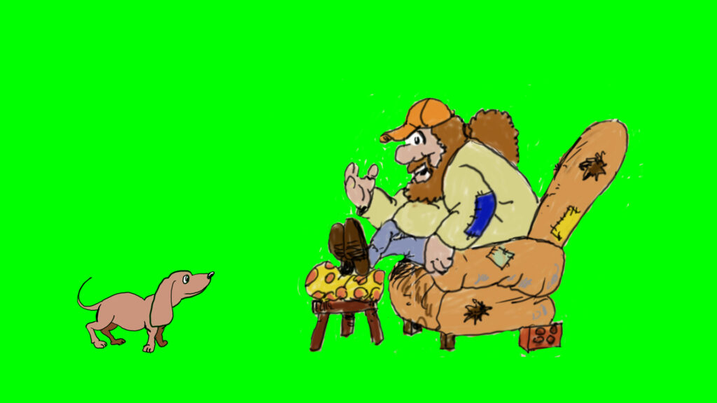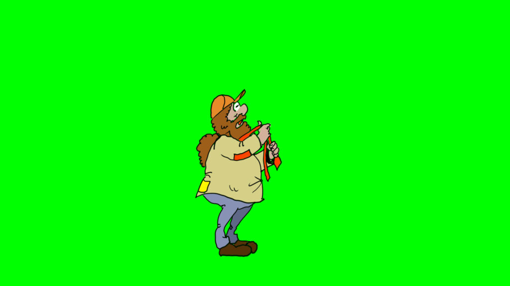 Mandamos o quadro chave e dizemos o que queremos que o personagem faça, simples assim. Mas tem que ser bem específico pois a IA é muito criativa a pode dar um zoom que a gente não pediu ou rotacionar o personagem em perspectiva, mas nosso cenário é plano, lateral, aí tem que voltar e fazer de novo, mas ela é tranquila, faz e não reclama, e aí faz exatamente como pedimos. Para preservar os cenários mandei os desenhos com fundo verde para eliminar depois no After Effects e sobrepor as animações sobre os cenários.