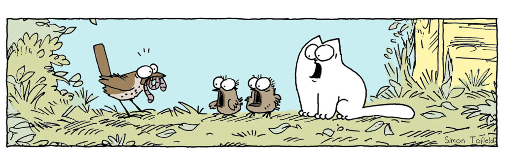 | Simon Tofield (n. 1971) é um ilustrador, cartunista e animador britânico. Apaixonado por desenho desde criança, trabalhou em diferentes estúdios de animação antes de criar, em 2008, o curta Cat Man Do, que deu origem a Simon’s Cat. Tofield se inspirou em seus próprios gatos para desenvolver os personagens — ele chegou a ter quatro felinos que serviram como modelo para as situações retratadas. O estilo minimalista em preto e branco e a narrativa silenciosa tornaram-se sua marca registrada. Com o sucesso viral no YouTube, Tofield expandiu Simon’s Cat para livros, tirinhas em jornais, produtos licenciados e até videogames, transformando uma ideia simples em um fenômeno global.  |
