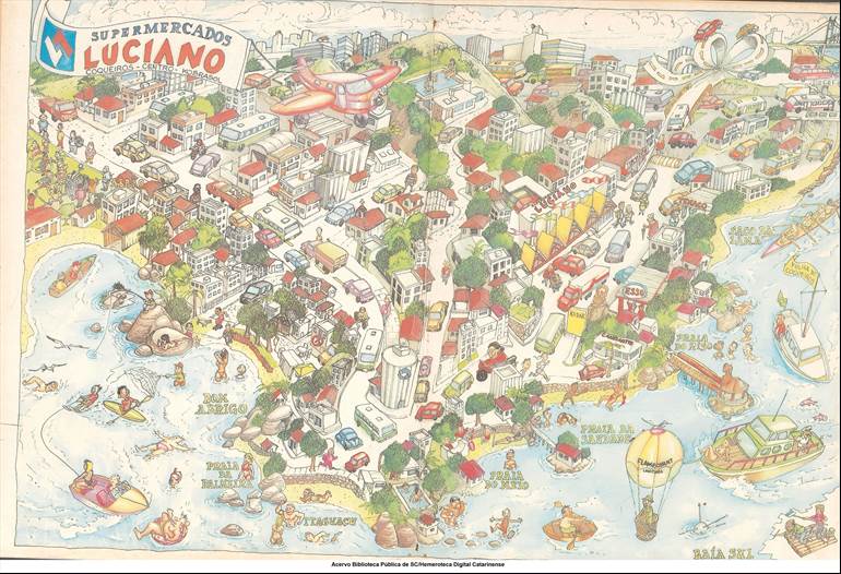 A Rita paulino mandou hoje algumas edições digitalizadas da Folha de Coqueiros, jornal de bairro idealizado por Silvino Goulart, mais conhecido por Barão, grande amigo que partiu prematuramente e atualmente editado pela Sybila Goulart, jornalista incansável que até hoje mantém esse que, provavelmente, é o Jornal de Bairro mais longevo da imprensa brasileira. Tive a oportunidade de desenhar (com, cores de Yara Souza) a pequena parte do Continente e em especial o “meu cantinho” onde morei por anos, a Praia do Bom Abrigo de onde ia caminhando até a Praia de Coqueiros, onde ficava o Diário Catarinense, bons anos aqueles. Fico pensando com meus botões… como desenhei em Santa Catarina!!!!!